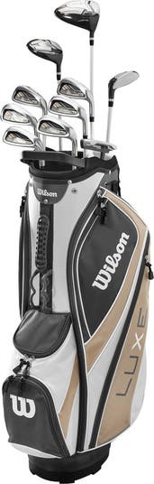 The Wilson Luxe Complete Golf Club Set has been designed specifically for Women and features performance components and a lightweight premium Cart bag. This complete set features lightweight components designed for the swing characteristics of women. The set is R&D engineered for the hand size of women, physical geometries, playing styles and swingspeeds.