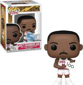 Score a slam dunk for your National Basketball Association collection with Pop! Wilt Chamberlain. Recruit this Hall of Fame legend to your basketball collection with this exclusive Pop! Wilt Chamberlain in his 1962 Philadelphia Warriors uniform. Pop! Wilt Chamberlain holds up a sheet of paper with �100� written on it, symbolizing his record-breaking, 100-point game. Vinyl figure is approximately 3.85-inches tall. Item Number