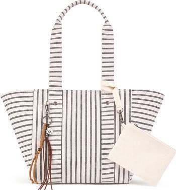 Byron Medium Beach ToteEffortlessly stylish and functional, the Byron Medium Beach Tote is crafted from natural speckled canvas with timeless bone and black striping or solid natural bone. Designed for everyday ease, it features a lined interior with two pockets—one zippered and one open—for organized storage. A convenient attached coin pouch adds versatility, while decorative tassels or keychain accents lend a relaxed, coastal finish. Bone and black stripe natural speckled canvas or solid natural bone Lined interior Two interior pockets: one zip, one open Attached coin pouch Decorative tassels and keychain Imported Fabric: 70% Cotton, 30% PolyesterCare: Do not wash. Damp wipe clean only.