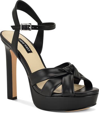 Wide straps convene to create a voluminous knot on a retro-cool sandal lofted by a chunky platform and soaring block heel.