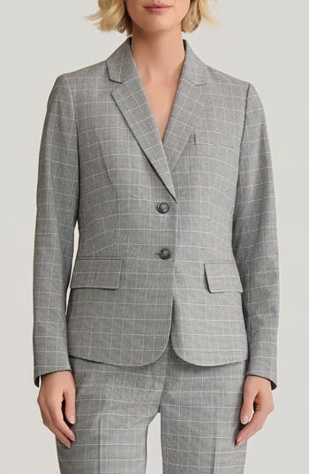 A classic plaid patterns a staple jacket that works for desk days and drinks dates.