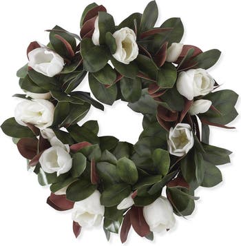 Beautifully layered magnolia leaves and delicate white blooms make the Windsor Magnolia Wreath a statement of timeless elegance. Whether adorning a covered porch or brightening an interior wall, it transforms any space with its sophistication. A lasting luxury, timeless and unrivaled.