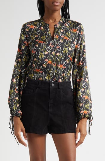 Bring flowers to every occasion in this button-up shirt cut for a flowy, blousy fit that makes the most of its fine, airy fabric.