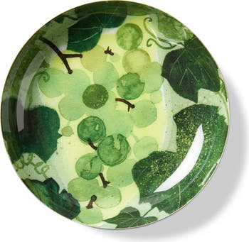 - This green iron trinket dish features a wine grapes design, perfect for holding everyday items.