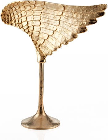 A bird in flight, the nurturing warmth of a nest, the spiritual comfort of the angel wing. The FEATHERS COLLECTION has a wonderful array of symbolism. Golden wings sculpted, cast and hand polished by artisans, glow with a heavenly magic on their elevated pedestals to become the focal point of any setting they are in , whether on a mantel or an alcove. Choose from either left or right or get both to make a stunning pair. Each of our creations is designed in our San Francisco studio. Master craftsmen using centuries old technique of sand casting create the original mould and skilled artisans hand create every piece, with pride, in our family owned factory. |Dimensions : Size: 18" H; 16" L; 5.5" W |Finish : Gold |Material : Aluminum |Use and Care Given its handmade and hand-finished nature, variations in the piece are to be expected and celebrated. No two pieces are exactly alike.