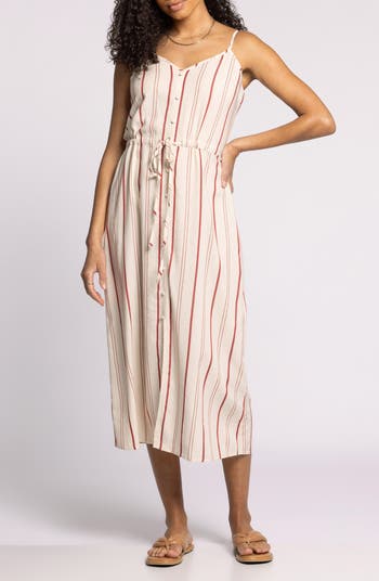 A defining tie belt shapes the silhouette of this breezy linen-kissed midi made with slender straps and an airy front vent to further its summery vibe.
