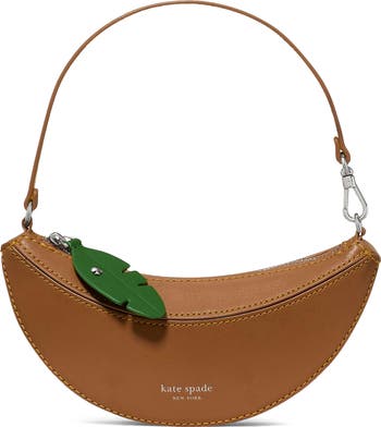 This beautifully curved bag shaped like the signature 'Wink' is detailed with a leafy zip pull for vibrant contrast. The strap allows you to wear it over your shoulder or it can be removed and converted to a wristlet.