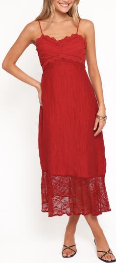 Suspended by slender adjustable straps, this figure-skimming maxi is romanced by intricate embroidery and lovely semisheer lace.