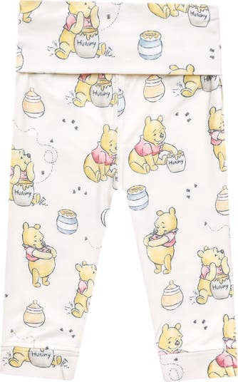 A clever fold-over waist adjusts as baby grows in these buttery-soft pants covered in a whimsical Winnie the Pooh print.