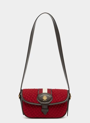 This Winter Capsule mini bag is made from dark red felted wool with diamond quilting and soft brown calfskin. Gold-tone hardware and Bally signifiers give its essential silhouette a sophisticated finish.