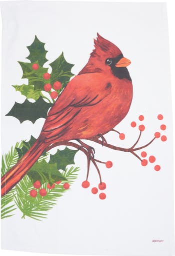 Winter Cardinal Printed Cotton Flour Sack Kitchen Towel