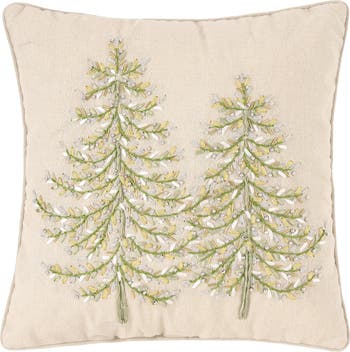 Accent your holiday decorations with the hand crafted captivating art of the Winter Garden Ribbon Art Pillow. Featuring an array of intricate ribbon branches forming two classic evergreen trees, this pillow and its unique texture will become a centerpiece of your Christmas decor. Finished with a coordinating piped edge and secured with a zipper closure. Crafted of a soft polyester/cotton blend cover and removable polyester insert for easy care. Spot cleaning recommended. Size: 16-inches x 16-inches