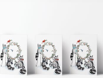 Winter/Holiday Greeting Card Pack Sets (3 ct) Raccoon Family Wreath