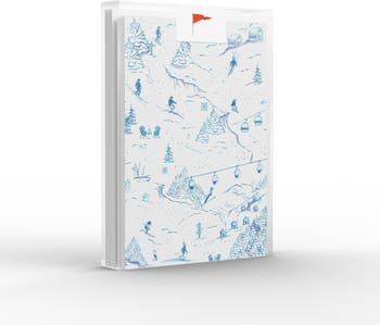 This 8-pack of greeting cards is elegantly illustrated by artist Ingrid Ramus, founder and owner of the Ramus & Co brand. Artwork features a winter ski scene in blue. All greeting cards are made in the USA on heavyweight uncoated and locally-sourced and manufactured card stock. Each card is accompanied by a hand-embossed envelope made with heavyweight 95lb paper and a peel-and-stick flap - no licking envelopes here! All Ramus & Co. greeting cards are printed on FSC and SFI certified paper sourced from a regional mill that harnesses 66% of its energy from on-site sustainable sources, such as emission-free hydroelectricity and biomass co-generation from wood waste. All 8 greeting cards come packaged as a boxed set. Husband-and-wife team Calvin and Ingrid Ramus founded Ramus & Company in 2019, in New England, USA. Ingrid, the creative designer behind the brand, originates from Mexico, where she cultivated her skills in fashion and textile design. Drawing from her unique and inquisitive perspective on preppy style, Ingrid prolifically designs whimsical yet classic stationery and lifestyle items.