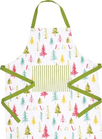 Introducing the Wonderland Stripe Apron, a lovely festive and enchanting addition to your holiday decor. This captivating apron featuring a painterly and colorful array of Christmas trees. Designed to evoke the cooking spirit of the season, this apron is perfect for adding a touch of holiday magic to your kitchen.