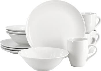 The Gibson Home Wintercap 12 piece fine ceramic dinnerware set is perfect for casual every day dining with its classic design and glossy finish. Constructed of fine ceramic that is lightweight dishwasher, oven, and microwave safe for easy clean up and reheat. Set comes with service for four including dinner plates, cereal bowls, and 9oz mugs.