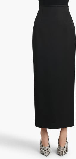 Clean, elongated and sharply tailored, this pencil skirt is made in Italy from double-faced satin with a subdued shine and fluid weight. A contoured waistband and precise darts frame the silhouette, and the back slit ensures your power stride is never restricted.