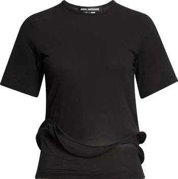 Cutouts reveal peekaboo flashes of skin between the wired hem of this fitted mesh T-shirt that evokes the boundary-pushing experimentation of Watanabe’s spring '26 collection, where ordinary objects like wire hangers became extraordinary art.