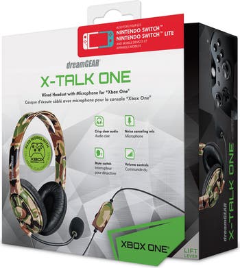 WIRED HEADSET WITH MICROPHONE FOR XBOX® SERIES X/S and XBOX ONE® Bring your games alive with the X-Talk One Wired Headset. X-Talk One offers high quality sound and comfort while playing on the Xbox® network. The headset includes a high-fidelity microphone with an adjustable boom for use on either side, in-line volume control, and mute switch. Features Connects to Xbox® Series X/S or Xbox One® controllers. Noise suppressing microphone. Mute switch. Volume control. Comfortable design with adjustable band and microphone. 4-foot cable length. Ideal for video conferencing. Also compatible with PS5™, PS4®, Nintendo Switch®, Nintendo Switch Lite™, smartphones, tablets and other 3.5mm-compatible audio devices. Specifications Frequency response 20Hz-20KHz Driver size 40mm Impedance 32?+15% Sensitivity 103dB Connector 3.5mm stereo plug Includes X-Talk One User guide Package Languages English, French, Spanish | User Guide Languages English, French, Spanish