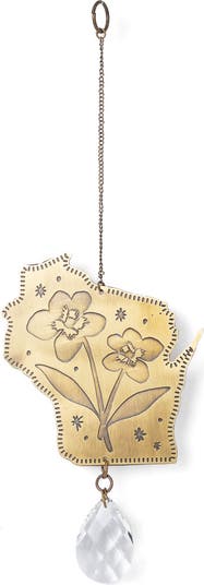 Celebrate Wisconsin State with a brass state-shaped suncatcher engraved with the states charming Wood Violet. Known for its quiet resilience and beauty, this state flower is rendered with fine hand-drawn detail. A faceted glass crystal scatters sunlight into rainbow flecks, brightening any space. This suncatcher is a thoughtful keepsake for Wisconsin State residents or lovers of floral décor.