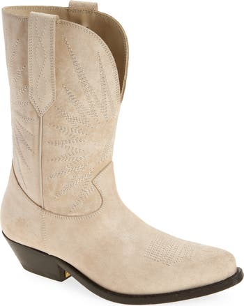 Intricate topstitching and a beautifully dipped topline perfect the classic Western styling of an Italian boot handcrafted from buttery suede.