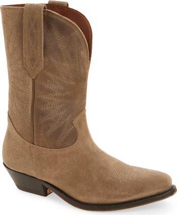 Topstitched flames and a beautifully curved topline perfect the classic Western styling of this handcrafted suede boot emblazoned with a Broken Star for a signature finish.