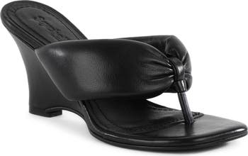 Puffy leather straps and an architectural wedge heel bring artful dimension to a square-toe flip-flop featuring an OrthoLite® footbed for premium cushioning.
