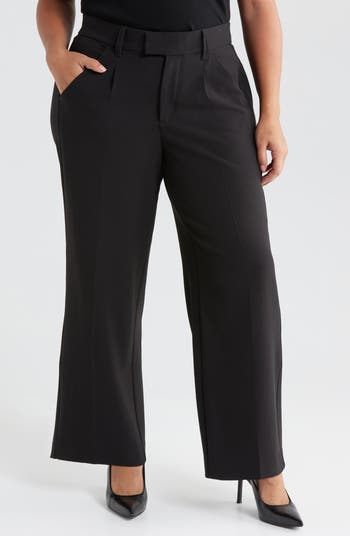 Crisp pleats complement these sophisticated, superhigh-rise wide-leg pants made with 'Ab'solution powermesh panels that mold and hold.