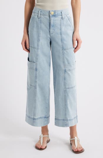 Get things done in these cropped wide-leg pants rendered in a neutral green hue and featuring a high waist and six handy pockets.