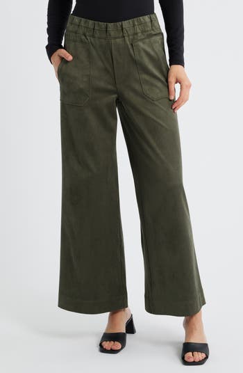 Patch pockets and a solid neutral wash bring plenty of casual-chic style to these wide-leg pants made with plenty of comfortable stretch.