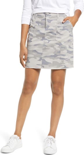 Military style steps to a more muted beat in this fringe-finished, cotton skirt done in a pale palette.