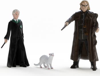WIZARDING WORLD: MAD-EYE MOODY, DRACO MALFOY & FERRET - 3 Figure set - When it comes to bullies, Mad-Eye Moody shows no mercy. When Draco Malfoy threatens Harry Potter, Mad-Eye Moody pulls out his magic wand and turns him into a white ferret. He'll just have to wait to be turned back again - serves him right! The Mad-Eye Moody, Draco Malfoy and ferret figure set depicts the film scene in which Professor Moody turns Draco Malfoy into a ferret to prevent him from attacking Harry Potter. Movable arm for Draco Malfoy and Mad-Eye Moody. A world of magic is arriving from schleich for you to play and collect! This officially licensed wizarding world figure is crafted with detail. Straight from Hogwarts, this figure is a ideal gift for Harry Potter fans. From Diagon Alley to the Forbidden Forest, friendship, spells & magic await! Imagination without limits, schleich toys bring every story to life. These schleich figurines are part of the Harry Potter collection and are suitable for fans aged 6 and upward.