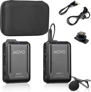 Universal wireless system: Record crystal-clear, distortion-free audio from your DSLR, camcorder, smartphone, or tablet. Perfect for filmmakers, vloggers, mobile journalists, and content creators Reliable audio: Features an upgraded RF Chipset that broadcasts on the open 2.4GHz frequency spectrum, allowing for interference-free and regulation-free wireless transmission up to 200' ft (60m) 1-year warranty: WeÂ’ve got your back! Our products are designed to ease your technical woes, not add to them. Our friendly US-Based support is here to help Convenient: Listen to your audio in realtime with the headphone input to ensure accurate sound recording. For more control, adjust the microphone volume to reduce time in post-production. Each unit is powered by two "AAA" batteries for up to 6 hours of operation In the box: Includes a transmitter with belt clip, receiver with belt clip and shoe mount, lavalier microphone, 3.5mm TRS cable for cameras, 3.5mm TRRS cable for smartphones and tablets, and a hard case Includes Specifications Manual Receiver with camera/tripod mount Transmitter with belt clips Lavalier microphone with windscreen and lapel clip 3.5mm TRS cable (for DSLRs, video cameras, recorders) 3.5mm TRRS cable (for smartphones, tablets, computers) Hard carrying case 1-Year Warranty System specs RF Modulation: GFSK Frequency Band: 2.4GHz Frequency Response: 35Hz-14 KHz+/-3 dB Signal to Noise Ratio: 84dB Audio input connector: 3.5mm TRS Distortion: 0.5% (-60 dBV, 1 KHz input) Power supply: Two AAA batteries (up to 6 hours of run-time) Transmitter/Receiver Dimensions (each): 1.8" x 2.8" x 1.4" (45 x 70 x 35mm) Weight (each): 47g (1.7 oz) without batteries Lavalier Mic Specs Polar pattern: Omni-directional Frequency Range: 35Hz ~ 18 KHz Signal / Noise?74dB SPL Sensitivity: -30dB +/-3dB / 0dB=1V/Pa, 1 kHz Connector: 3.5mm TRS Cable Length: 1.2m (4') View WMX-1 manual