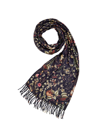 Our Wolf Garden Navy Scarf, with its soft recycled materials and cosy tassels, offers warmth for your twilight explorations or early morning nature walks. Wrap yourself in its embrace to keep the chill at bay while you commune with the earth.