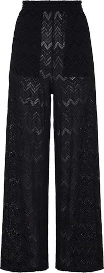 A flowing pair of crocheted pants in soft stretch jersey, revealing a hint of leg. Inspired by chic East Coast style, an elasticated waist enhances the comfort.