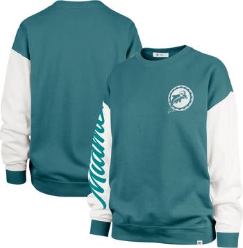 Add a pop of aqua to your Miami Dolphins game-day look with the '47 Double Header Rise Andie Pullover Sweatshirt. This stylish pullover features a trendy oversized fit and color block sleeves for a fashion-forward look that's perfect for game day or any casual occasion. Made from a soft and comfortable cotton-polyester blend, it will keep you warm and cozy all season long.