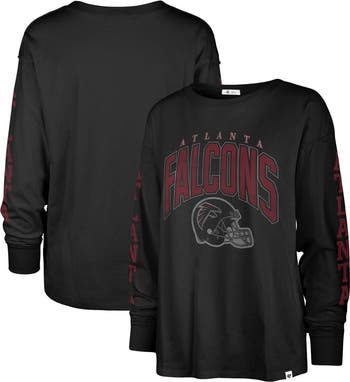 The Women's '47 Black Atlanta Falcons Tom Cat Lightweight Long Sleeve T-Shirt is the perfect way to show your unwavering support for the Atlanta Falcons. This oversized top features distressed screen print graphics that proudly display your team pride. The woven clip tag and flatlock stitching add a touch of style, while the cotton material ensures comfort and breathability. Whether you're cheering from the stands or simply showing your support, this t-shirt is a must-have for any Atlanta Falcons fan.
