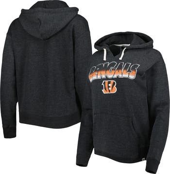 The Women's '47 Black Cincinnati Bengals Color Rise Kennedy Pullover Hoodie is the perfect way to show unwavering support for the Cincinnati Bengals. This midweight hoodie features distressed screen print graphics showcasing team pride, while flatlock stitching and a front pouch pocket provide comfort and functionality. The drawstring hood and notch neck add style, making this hoodie a must-have for any Bengals fan.