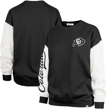 Stay cozy while cheering on the Colorado Buffaloes with this '47 Double Header Rise Andie Pullover Sweatshirt. Featuring a trendy oversized fit and color block sleeves, this sweatshirt is perfect for game day or any casual outing. Made from a blend of cotton and polyester, this pullover provides a soft and comfortable feel for all-day wear.