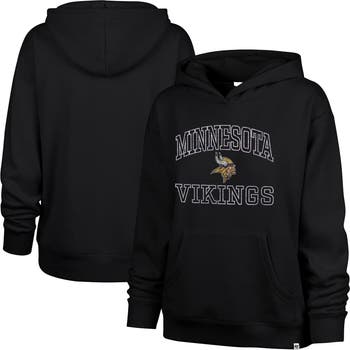 Stay cozy while repping the Minnesota Vikings with this '47 Clarity Naomi Pullover Hoodie. This stylish hoodie boasts a trendy distressed screen print graphic for a vintage vibe. Plus, its midweight construction and fleece lining make it an ideal choice for staying warm and comfortable during cooler game days.
