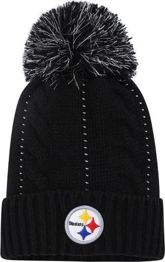 The cable design on this '47 Bauble hat adds a stylish touch to your Pittsburgh Steelers outfit. The stretchy, knit design allows for the perfect amount of warmth and a full coverage fit. Plus, the Pittsburgh Steelers embroidery on the cuff and fun pom on top give extra charm to your game day getup.