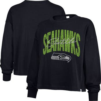 Show off your team pride with a trendy twist in this Seattle Seahawks Muse Sydney Long Sleeve Cropped T-Shirt from '47. The distressed screen print graphics create a vintage look that's sure to turn heads, while the cropped length adds a touch of modern style. The dropped shoulder seams provide a roomier fit, ensuring all-day comfort as you rep the Seattle Seahawks.