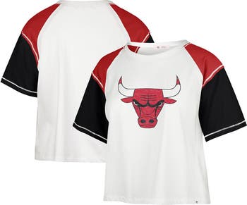 The Women's '47 Cream Chicago Bulls Premier Raglan Cropped T-shirt is the perfect way to show your support for the Chicago Bulls. This cropped tee features distressed screen print graphics of the iconic Chicago Bulls logo, making it a stylish and eye-catching way to represent your favorite team. The flatlock stitching adds a touch of durability, while the cotton material ensures a comfortable fit. Whether you're cheering on the Bulls at the United Center or just showing your team spirit around town, this cropped t-shirt is a must-have for any Chicago Bulls fan.