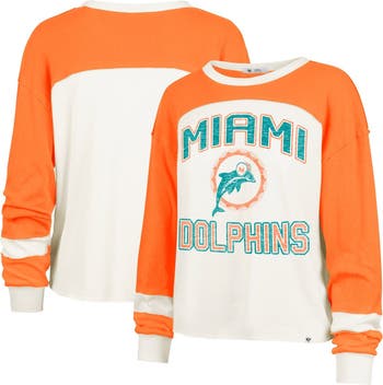 Women's '47 Cream Miami Dolphins Double Header Curve Raglan Long Sleeve Crop Top