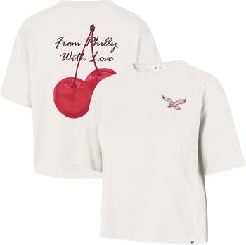 Represent the Philadelphia Eagles in style with the '47 Love Letter Reed City T-Shirt. Featuring the team name at the left chest and a unique design on the back, this soft-touch tee showcases your Philadelphia Eagles pride with flair. The slightly cropped hem is designed to hit right at the hip, making it a fashionable and comfortable addition to your game day wardrobe.