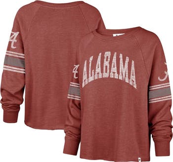 The Women's '47 Crimson Alabama Crimson Tide Allie Modest Raglan Long Sleeve Cropped T-Shirt is the perfect way to show your support for the Alabama Crimson Tide. With its raglan sleeves and cropped top design, this shirt is both stylish and comfortable. The distressed details give it a vintage look that will make you stand out from the crowd. Made from a cotton and polyester blend, this shirt is soft and breathable, making it perfect for any occasion. Whether you're cheering on the Crimson Tide at the stadium or just relaxing at home, this shirt is sure to become a favorite.
