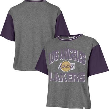 Add some retro flair to your Los Angeles Lakers collection with this '47 Rise Clubhouse Ziggy Color Block T-Shirt. This stylish tee features a distressed team wordmark and logo on the chest for a vintage look that complements the Lakers' iconic legacy. Plus, the team color-contrast sleeves add a bold and sporty touch, showcasing your Lakers pride in style.
