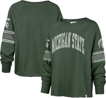 The Women's '47 Green Michigan State Spartans Allie Modest Raglan Long Sleeve Cropped T-Shirt is the perfect way to show your support for the Spartans. With its raglan sleeves and cropped top design, this shirt is both stylish and comfortable. The distressed details give it a vintage look that will make you stand out from the crowd. Made from a cotton and polyester blend, this shirt is soft and breathable, making it perfect for any occasion. Whether you're cheering on the Spartans at the game or just relaxing at home, this shirt is sure to become a favorite.