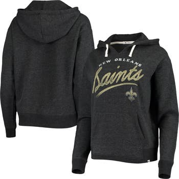 The Women's '47 Heather Charcoal New Orleans Saints Cross Script Emerson Hoodie is the perfect way to show unwavering support for the New Orleans Saints. With distressed screen print graphics and a front pouch pocket, this hoodie is stylish and functional. The drawstring hood provides extra warmth and comfort on chilly game days. Made from a soft cotton and polyester blend, this hoodie is sure to become a favorite in your wardrobe.