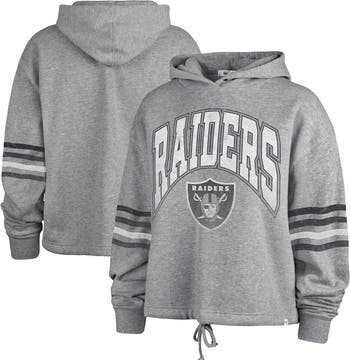 The Women's '47 Heather Gray Las Vegas Raiders Upland Bennett Pullover Hoodie is the perfect way to show your support for the Las Vegas Raiders. Made from a soft cotton and polyester blend, this midweight hoodie features a fleece lining for added warmth during chilly game days. Distressed screen print graphics proudly display your Las Vegas Raiders pride, while the cropped hem and dropped shoulder give it a stylish edge. Whether you're cheering from the stands or simply showing your support, this hoodie is the perfect way to represent the Las Vegas Raiders in style.